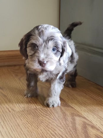 We are a happy family of 5 (9 including our adorable fur babies). Our plan to breed our dogs came about after we experienced how much love they added to our family. We are a registered LLC and members of the ACC (American Cockapoo Club). Included with the each pup will be our breed history and all the necessary paperwork to register your pup with the ACC if you choose to do so. It is very important to us that our pups go to amazing loving homes where they will be appreciated as ours are. Cockapoo puppies are highly intelligent and very easy to train. They are very loyal dogs who do well with children of all ages and other pets. While no dog is 100% hypoallergenic, the Cockapoo breed is one that has significantly minimal shedding which can be easier for maintenance and allergies. Our most recent puppies are F1B Mini Cockapoos! F1B means these pups are a 75% Poodle/25% Cocker Spaniel mix meaning they will have a curlier, non shedding coat.